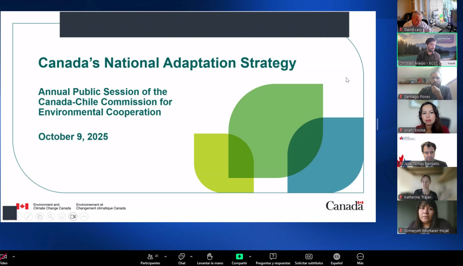 Por la tarde, Canadá, Chile y el Comité Consultivo Público Conjunto (JPAC) coorganizaron una Sesión Pública titulada «Soluciones lideradas por la comunidad para los desafíos climáticos en Canadá y Chile». Este evento reunió a cerca de 40 participantes del Gobierno, el mundo académico, la sociedad civil y el sector privado de ambos países. La sesión Pública proporcionó una valiosa plataforma para subrayar la importancia de integrar las perspectivas de las comunidades en situación de vulnerabilidad y las partes interesadas locales, cuya experiencia y conocimientos son fundamentales para dar respuestas inclusivas y resilientes al cambio climático. Este tema fue muy oportuno, ya que ambos países publicaron o actualizaron recientemente sus estrategias nacionales de adaptación, lo que ofreció una oportunidad única para intercambiar experiencias. La sesión destacó que una adaptación eficaz requiere una acción coordinada entre los gobiernos, los sectores y las comunidades, un enfoque que se refleja tanto en el marco chileno como en el canadiense.